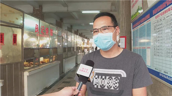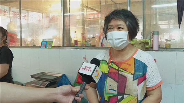 中心市场经营者:"平时也有消毒、测体温,问下价钱报价,对防疫各个方面提高了认识,戴口罩后,保护到自己也保护到他人。"