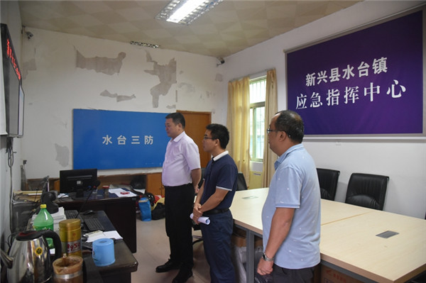 陈哲江一行首先来到镇三防办,听取了镇主要负责人关于水台镇防御台风工作的情况汇报,详细了解镇应急预案、应急值守、应急保障、群众转移、安置点设置等工作落实情况,随后前往九郎水库进行实地查看。