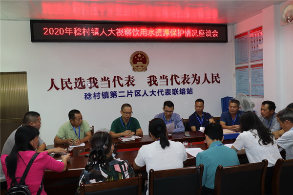视察组一行首先于稔村镇第二片区人大代表联络站(坝村)召开座谈会,听取农业、环保、水利部门责任人的介绍,就饮用水资源保护情况进行交流。