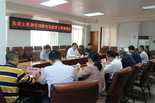 10月20日下午,新兴县委书记王巍在副县长伍树全的陪同下到县市场监管局调研座谈。