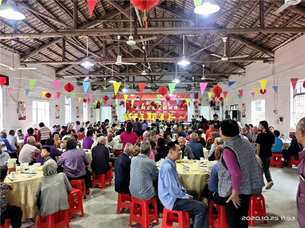 同日,东成镇思本村举行了第三届重阳敬老活动,党员干部、村委干部带头入户慰问,给村内270名65岁以上老人送上了慰问品和节日祝福。随后,老人们齐聚思本村礼堂享受满桌的美味菜肴,思本村“两委”干部、外出乡贤跟每一桌老人家都打了招呼,谈笑风生间共话往昔情,敬老爱老的气氛融洽。据悉,自2018年乡村振兴战略打响第一炮以来,思本村的乡贤们在镇党委、政府和村党支部的召集下重新汇聚在一起,成立了乡村理事会,并连续三年筹资举行敬老爱老活动,带头讲孝廉树新风,营造了良好的社会示范氛围。而在东成镇森村,今年举办的第十二届敬老活动也是热度不减,广大党员干部、热心乡贤和志愿者切实把村内敬老爱老的优良传统和美德发扬光大,用行动践行“百善孝为先”。
