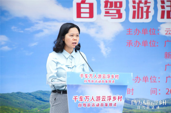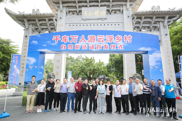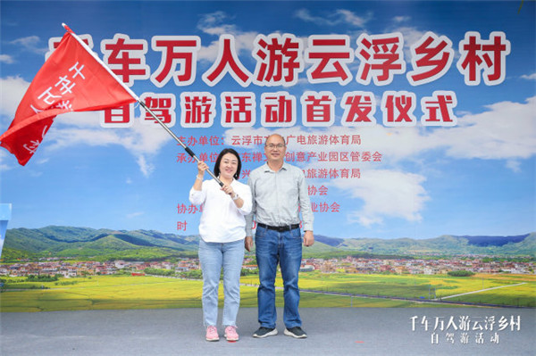 云浮市文广旅体局副局长陈丽明为广东省乡村旅游协会授予“广东人游云浮乡村”自驾游首发团旗帜;各县(市、区)文旅部门领导为5位领队授旗。首发仪式后,自驾游车队分赴云城区、云安区、罗定市、新兴县、郁南县,畅游云浮美丽乡村。
