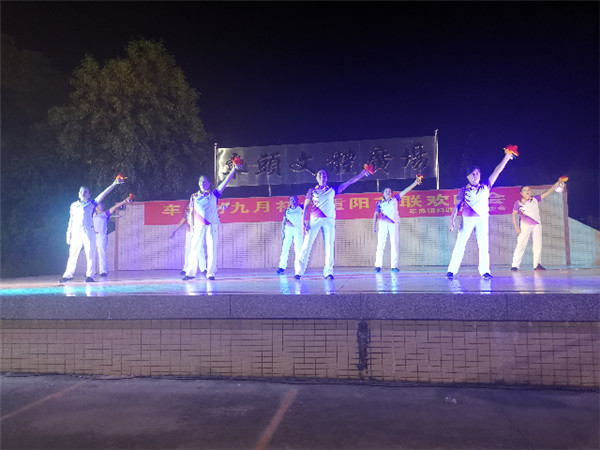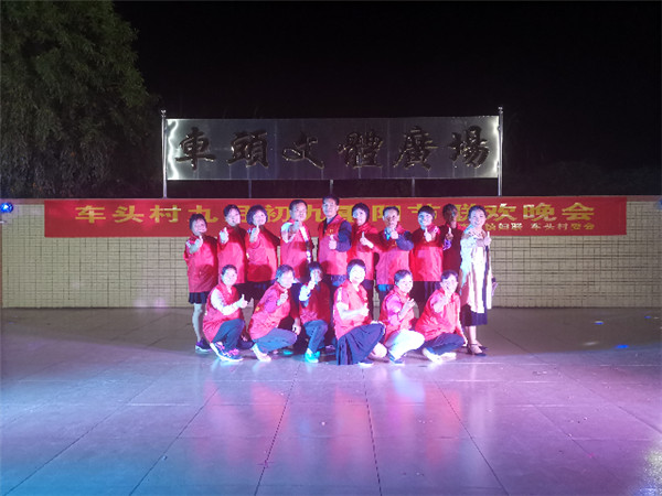 傍晚时分,老人们在村中祠堂享用了丰富可口的晚餐。随后,大家继续到了车头村文化广场欣赏由车岗镇妇女联合会及车头村委会主办的重阳节联欢晚会。晚会由车头村舞蹈队的《一起走天涯》拉开序幕。随后,各表演者先后上台亮相,独唱《我的中国心》、舞蹈《没有共产党就没有新中国》、《农民真伟大》等节目博得了观众的阵阵喝彩。通过此次活动,充分弘扬了尊老敬老、互助互爱的优良传统。