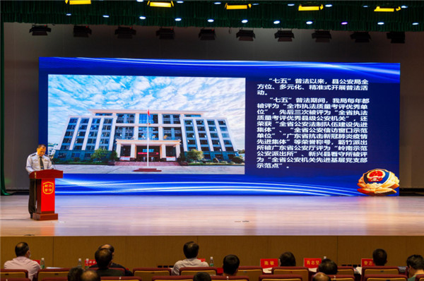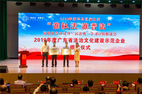会议为被评为“广东省法治文化示范企业”的广东电网有限责任公司新兴县供电局和广东新合铝业新兴有限公司进行授牌,肖志坚和陈敏分别为两家企业颁发牌匾。