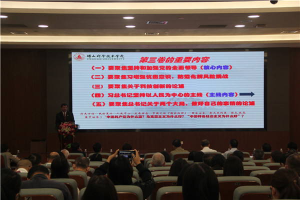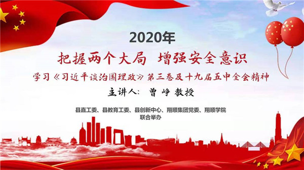 115日上午,由县直机关工委、县委教育工委、县创新中心、翔顺集团党委、翔顺学院联合举办的学习《习近平谈治国理政》(第三卷)宣讲活动在翔顺控股集团有限公司总部二楼演播室举行。县直工委书记李卫忠、县委教育工委书记崔有辉、翔顺集团常务副总裁钟世雄以及全县中小学校党支部书记和“两新”党组织书记两百多人参加学习。