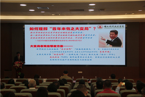 本次宣讲特邀佛山科学技术学院党委书记、教授、硕士生导师、佛山市讲师团成员曾峥同志主讲,主题是《把握两个大局 增强安全意识》。