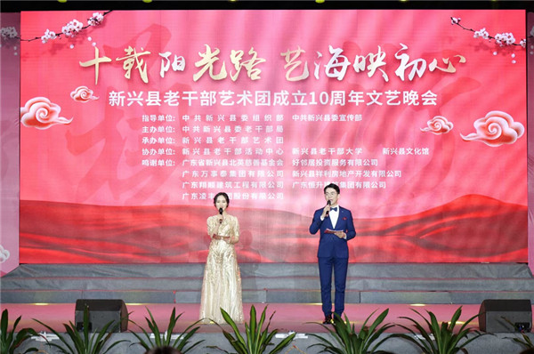 周冰容(县老干部艺术团团长):"我们老干艺术团自2010年12月成立,最初10多个人,后来经过十年发展,我们从小的发展到现在50多人。我们的节目以本地题材和红色基因为主,把本土故事搬上舞台,使到群众了解到新兴故事、 新兴文化。我们今后将以这个为起点,继续深入挖掘更多本土文化,宣传新兴。"
