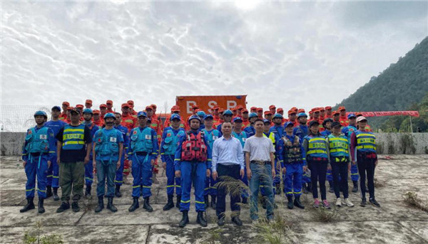 (县森林消防队与县蓝天救援队进行水域救援演练)