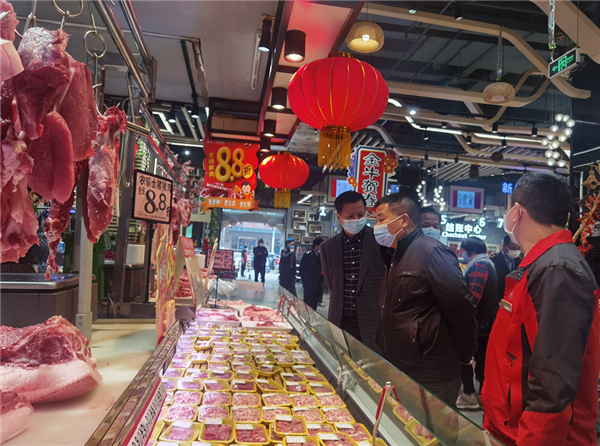 谭成、伍树全强调,各企业要严格落实企业安全生产主体责任,各部门要落实好部门监管责任,认真开展安全生产大检查,加大对市场供应的调控和监管力度,确保安全生产形势持续稳定。要严把粮食安全关,切实加强生产加工、流通等关键环节的监管,切实保障人民群众的根本利益。要保障市场物资供应及物价稳定,加强食品卫生安全监管,确保节日期间我县生活必需品市场供应平稳。要认真抓好常态化疫情防控工作,落细落实常态化疫情防控和安全生产各项措施,切实为广大消费者提供一个安全、放心的购物环境,让广大群众欢度新春佳节。