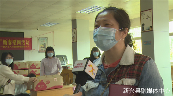 陆仁业(新港城不锈钢有限公司外来务工人员):“”今年决定不回家过年,因为县政府号召大家留在新兴过年,我们积极响应,免得添堵,来到人社局领取商家赞助我们的新年礼物,十分多谢县委县政府和县人社局以及各位商家对我们外来工的支持。”