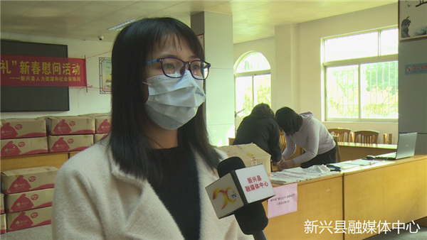 罗榕琼(广东省宝鼎不锈钢制品有限公司行政人员):”我公司大部分外地员工都愿意留在新兴过年,年前年后我司都会做好防疫工作,做好各方面留乡人员的后勤工作,感谢政府对留在新兴过年的外省人员的关心以及帮助,我们公司将领取到的福利礼品发放到外省人员。