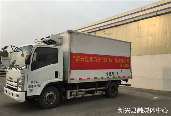 2月3日,记者在温氏佳味公司看到,工作人员正在忙碌装货,准备将一箱箱的温氏熟食鸡分别运送到县人社局慰问现场和各大企业。紧随着货车来到县人社局慰问活动现场,慰问组将温氏熟食鸡礼包、超市消费劵等节日用品陆续派发给留在新兴过年的外来务工人员。