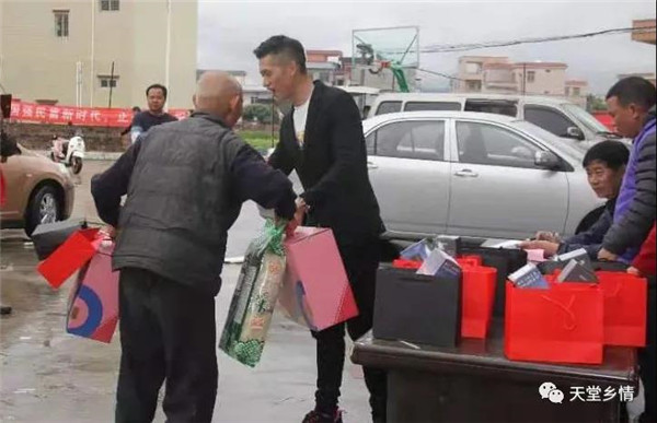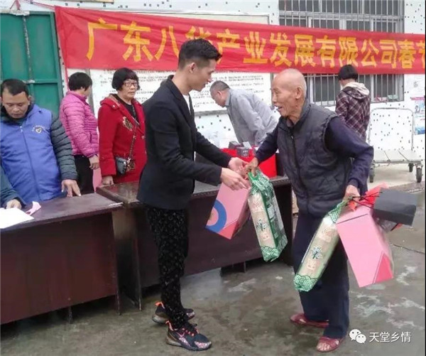 慰问活动当天,广东八华产业发展有限公司负责人、天堂镇东南乡贤代表黎明军亲自为长者和低保户、五保户送出慰问品并送去亲切的节日问候。