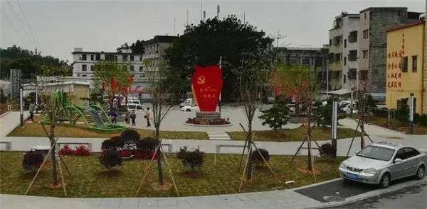 针对圩镇现有休闲类公园配置和服务半径有限的问题,结合居民生活需求及位置特点,在车岗大桥桥头位置利用原有600平方米闲置地兴建了一个滨江公园,铺设休闲步道,种植了大面积的绿化美化植物,加装了照明设施;并植入党建元素,在公园中央矗立起“永远跟党走”的火炬型塑像。此外,镇政府还将围墙打开,不但营造了更加阳光透明的政府氛围,也与滨江广场连成一体,彰显滨水临江特色。如今的滨江公园,还加装了小型游乐设施和健身路径,不只是周边群众休闲散步好去处,还俨然成为了孩童们游戏的乐园。