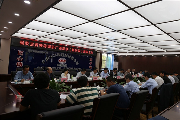 在随后召开的工作座谈会上,中国铁设广湛铁路工程总承包项目部负责人、中铁十二局集团广湛铁路四标段项目经理部负责人分别介绍广湛高铁及新兴段总体情况、广湛高铁(新兴段)建设推进情况,与会人员还就工程推进中存在的难点问题展开了广泛讨论。