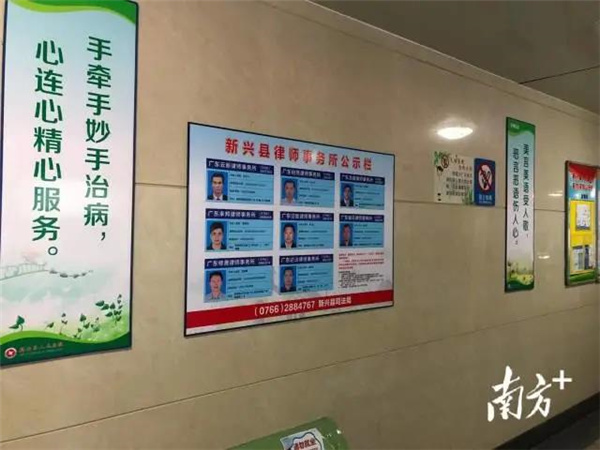 行动中,新兴县司法局将律师事务所信息公示上墙。在县人民医院、县第二人民医院、县中医院、县妇幼保健院、天堂镇卫生院五大医院的显眼及人流密集位置,把新兴八家律师事务所的名称、地址、联系电话、举报电话、收费标准等相关信息公示上墙,提示群众拒绝黑中介,谨防欺诈,如需“打官司”、“法律咨询”须到正规的律师事务所。
