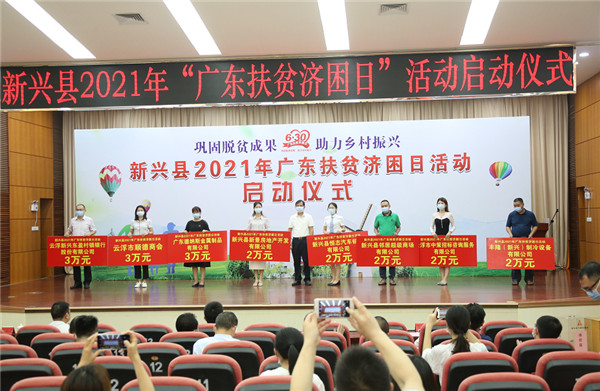 今年6月30日是第12个“广东扶贫济困日”。今天上午,我县在县委县府大楼大会堂举行仪式,启动主题为“ 巩固脱贫成果 助力乡村振兴”的2021年“广东扶贫济困日”活动并进行现场捐款,共捐得款项1377.3907万元,再创新高。县委书记王巍,县委副书记、县长陈哲江,县人大常委会主任陈就庆,县政协主席梁国华等县四套班子领导参加启动仪式。