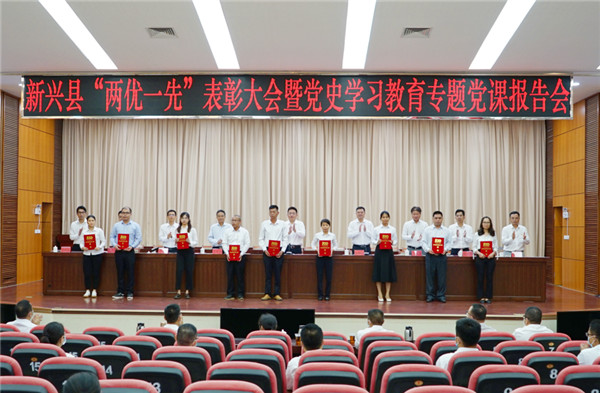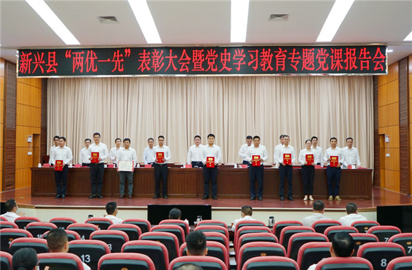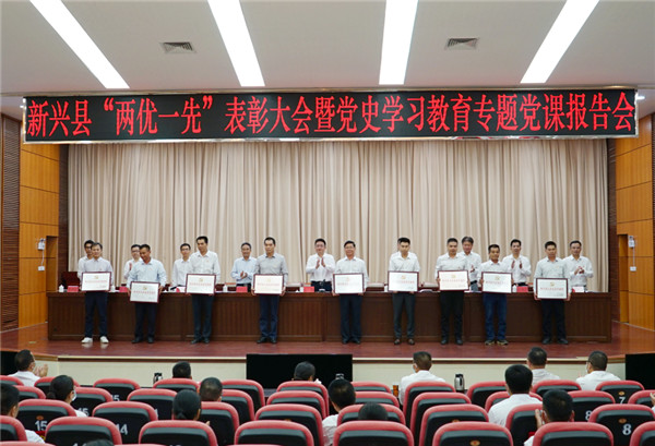 在即将迎来中国共产党成立100周年之际,6月29日上午,云浮市召开“两优一先”表彰大会暨党史学习教育专题党课报告会,我县在县委县政府大楼大会堂组织收看收听,并召开新兴县“两优一先”表彰大会暨党史学习教育专题党课报告会,表彰了全县优秀共产党员、优秀党务工作者和先进基层党组织。县委书记、县委党史学习教育领导小组组长王巍出席表彰大会并作党史学习教育专题党课报告。县委副书记、县长、县委党史学习教育领导小组第一副组长陈哲江主持表彰大会。县委常委、组织部部长、县委党史学习教育领导小组副组长谭志春宣读表彰决定。