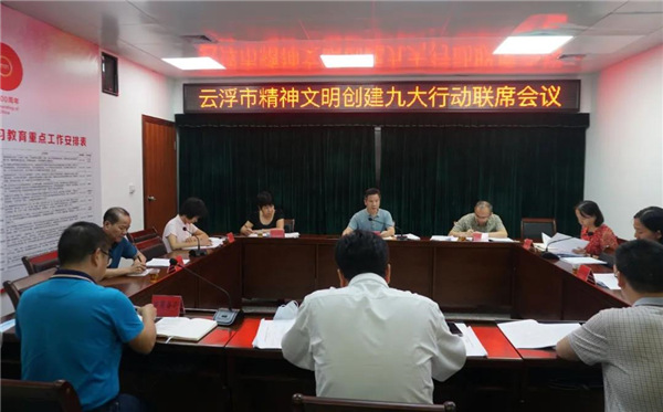 7月23日,云浮市召开精神文明创建九大行动联席会议,认真贯彻落实省文明委会议精神,深入开展精神文明创建九大行动,进一步提升市民文明素养和城市文明程度。会上,市文明办、市委网信办、市交通运输局、市商务局、市文广旅体局、市市场监管局、市妇联分别就各单位精神文明创建九大行动的落实情况进行了汇报。