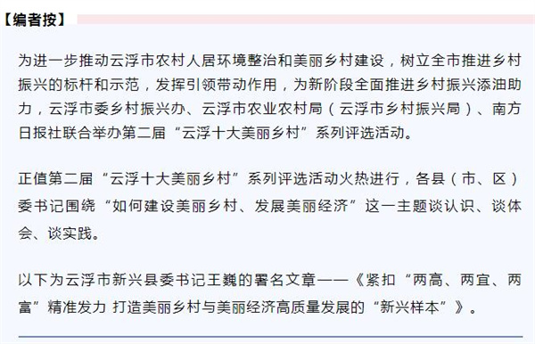 新兴县始终坚持党建引领乡村振兴,践行共建共治共享理念,切实凝聚推进美丽乡村建设的强大合力,构建起美丽乡村、共同缔造的良好格局。