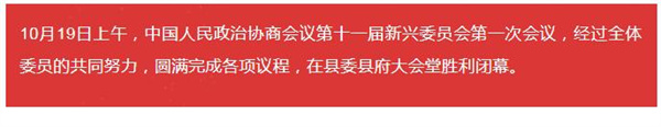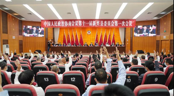 在庄严的国歌声中,中国人民政治协商会议第十一届新兴县委员会第一次会议胜利闭幕。