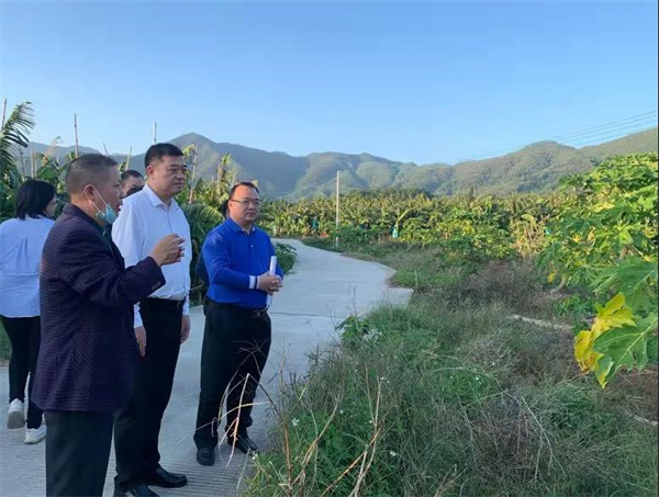 在内东粉蕉和水果木瓜种植示范基地可以看到,连片的蕉树和木瓜树挂满果实,长势喜人。“今年基地产量如何?”“销量怎么样?”“是否遇到什么困难?”陈哲江通过与种植示范基地相关负责人交谈,详细了解该基地种植规模、产销情况、经营模式、盈利情况等,指出,粉蕉和水果木瓜有着可观的市场需求,周期短、见效快、效益好,基地要充分发挥乡村振兴驻镇帮镇扶村工作队资源、力量,加强基地管理,注重市场对接工作,不断做大规模,做强优势产业,切实促进农民增收致富;相关部门和乡镇要加强与基地的沟通对接,及时帮助解决种植中出现的各种困难问题。