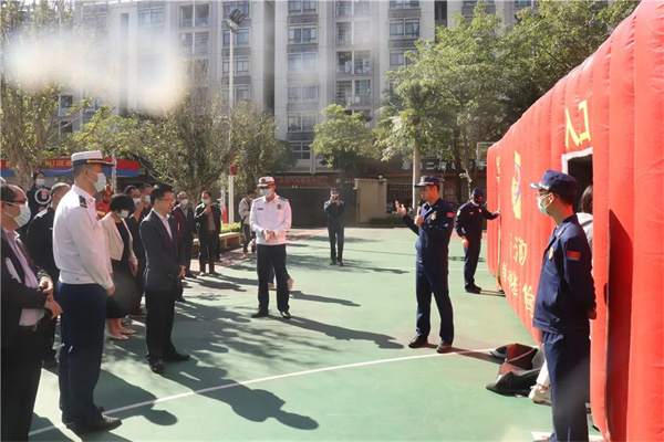 启动仪式后,全体人员观摩了消防指战员以徒手爬绳上三楼、水带撤离操、缓降器逃生操、纵深灭火救人操以及烟热逃生体验为内容的消防疏散和逃生自救演练,现场人员积极参与体验烟热逃生,进一步提升了消防安全意识和逃生自救能力。