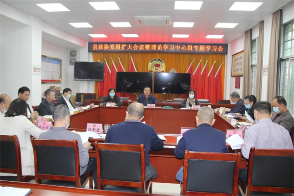 11月22日下午,县政协召开党组扩大会议暨理论学习中心组专题学习会,传达学习贯彻习近平总书记在党的十九届六中全会上的重要讲话精神和全会精神,以及省委常委会会议精神、全省传达学习贯彻党的十九届六中全会精神干部大会精神,市委常委会会议精神,县委常委(扩大)会议精神,研究贯彻落实意见。县政协党组书记、主席梁国华主持会议。县政协领导陈敏、陈丽兴、陈启雄、苏子汉、陈丽明、汤健平,处级领导苏伟雄、刘桂秋、严树海,秘书长梁道勇等参加会议。