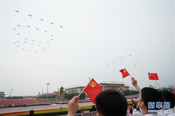 7月1日上午,庆祝中国共产党成立100周年大会将在北京天安门广场隆重举行。这是飞行庆祝表演。新华社记者 鞠焕宗 摄