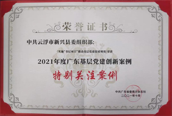 近期,由南方杂志社(南方党建智库)发起的第二届广东基层党建创新案例征集活动结果公布,由新兴县委组织部报送的党建案例《实施“书记项目” 推动基层党建提质增效》获评2021年度广东基层党建创新案例“特别关注案例”!