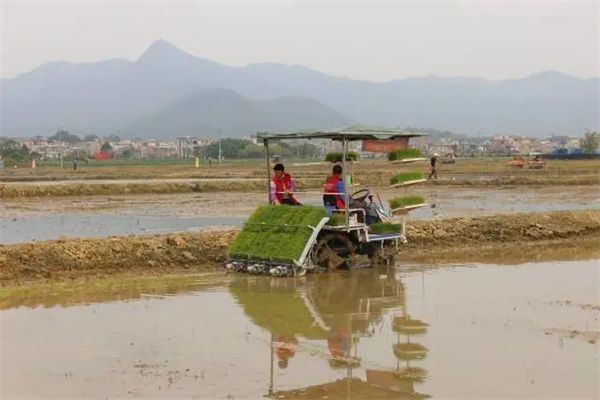 五谷丰合作社社员温少龙正熟练地驾驶着插秧机,茁壮的秧苗被精准投放、植入,车身后翻起一层层浓黑的泥浪。“这么大一垄地,起码有一亩吧,多久才能插完?”“半小时就行。”温少龙轻松地回答:“天气好,很适合种植水稻。有了这些机器,耕田种稻又快又省力。”