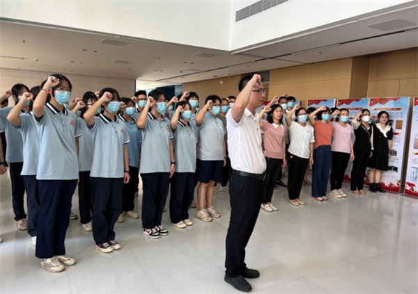 团县委组织学校团委和团员学生代表开展“青春心向党、建功新时代”主题团日,深入学习党的青年运动史,并重温入团誓词。