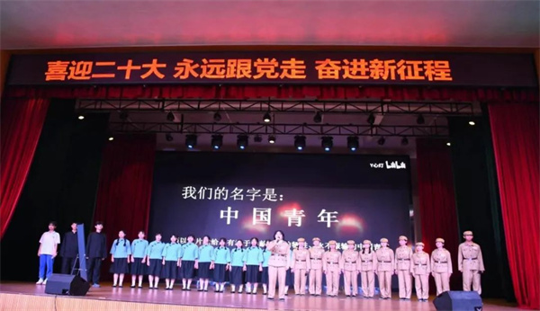 学生们演唱了《光荣啊,中国共青团》《中国青年》《又忆五四、又应五四》等歌曲,用歌声呈现青年们在中国共产党的领导下为国家富强、人民幸福、民族复兴而不懈奋斗的精神力量。