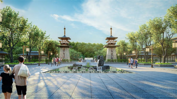 明心公园的构建基于“生态景观林+都市休闲公园”的多维需求,将塑造一种“山水碧野、乐活城芯”的新公园能量。项目西面为惠能广场景区,荟萃城市人文精粹,将唐式建筑风格和禅文化圆融结合。公园建成之后,居民及游客可通过“圣→宁→游”的游行路线,感受新兴禅意山水文化的魅力。