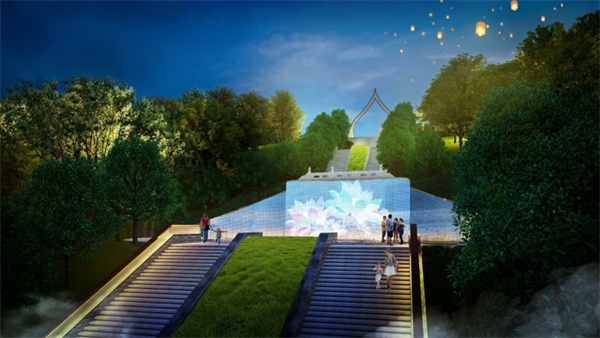 项目设计从惠能纪念馆和新兴禅文化中萃取灵感,并回归场地特征、文化底蕴和夜间休闲活动的核心诉求,融自然景观与人文景观于一体,打造成一座为居民提供集郊游休闲、健体康养、摄影打卡于一体的综合性文化休闲公园。