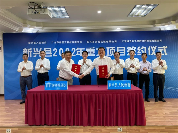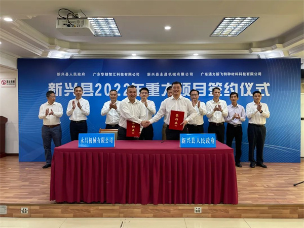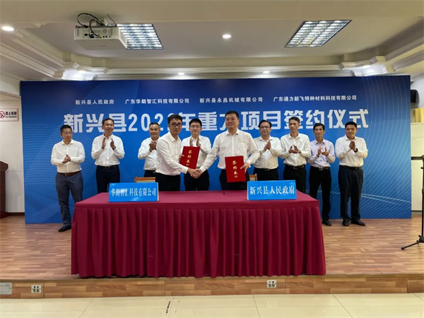 仪式上,新兴县委副书记、县长陈哲江代表新兴县人民政府,分别与广东华朗智汇科技有限公司、新兴县永昌机械有限公司、广东通力新飞特种材料科技有限公司签约。