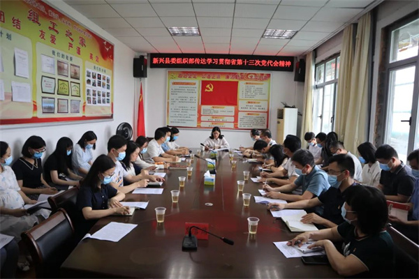 5月27日,新兴县委组织部召开全体干部职工会议,专题传达学习中国共产党广东省第十三次代表大会精神,研究贯彻落实措施。县委常委、组织部部长冯海燕主持会议并讲话。