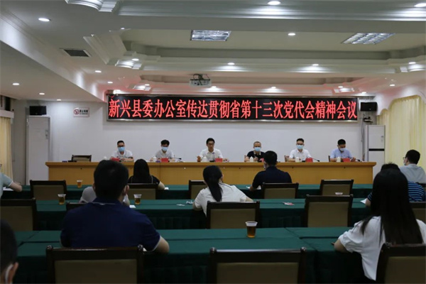 5月27日,中共新兴县委办公室召开干部职工会议,专题传达学习贯彻省第十三次党代会精神。