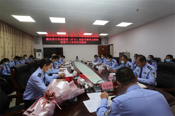 5月27日,新兴县公安局召开党委(扩大)会议,专题学习贯彻中国共产党广东省第十三次代表大会精神。会议由副县长、县公安局党委书记、局长王志洪主持,局在家班子成员、“全国优秀人民警察”王萍同志,部分中层领导代表及青年民警代表参加。