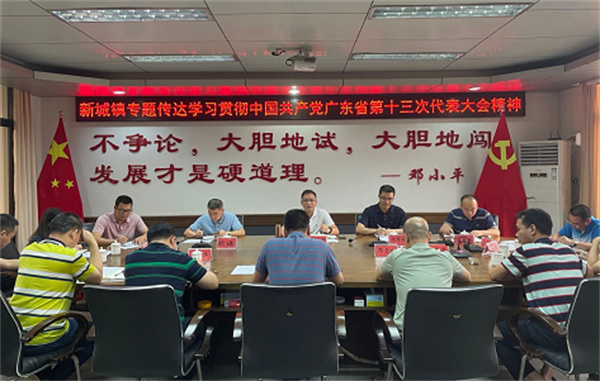 5月27日,新城镇召开领导班子会议,专题传达学习贯彻中国共产党广东省第十三次代表大会精神,研究新城贯彻落实意见。