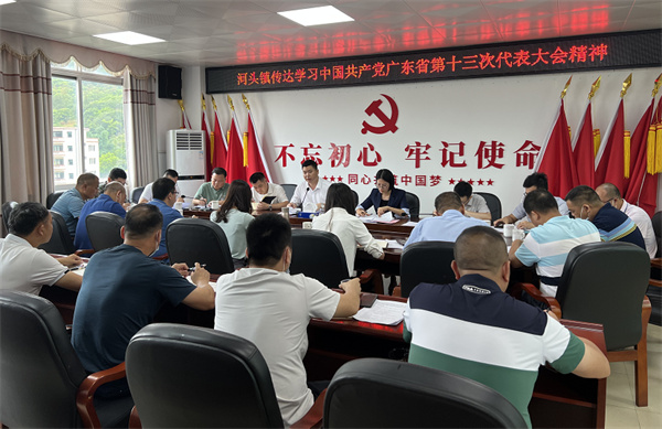 5月27日,河头镇召开班子扩大会议传达学习贯彻中国共产党广东省第十三次代表大会精神。