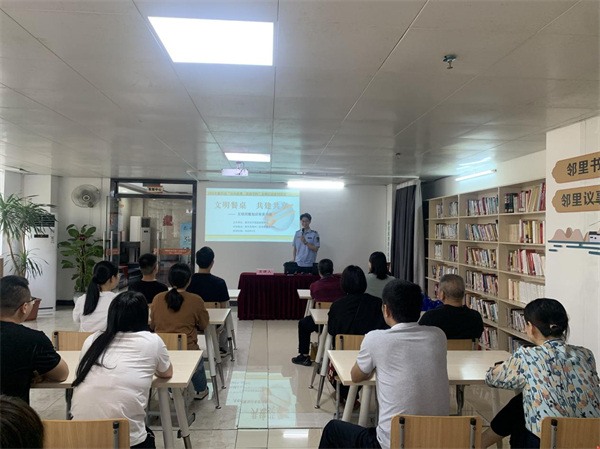 讲座现场,新兴县市场监管局餐饮股唐宏同志围绕 “推广文明餐桌行动” 这一核心理念展开深入讲解,强调学习文明用餐、使用公筷公勺的重要性,旨在引导群众共同构建文明和谐、绿色节俭的社会风尚。讲解过程中,唐宏同志不仅详细阐释了文明餐桌的概念及对人民生活的积极意义,还通过现场有奖问答、发放宣传资料等方式,向群众普及推行文明餐桌的现实意义与实际操作方法。通过此次活动,有效引导广大群众树立节俭意识,主动践行文明餐桌理念,为营造浓厚的文明用餐氛围起到了积极的推动作用。