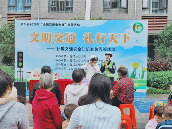 为切实提升社区居民的交通安全意识和文明素养,营造122“全国交通安全日”浓厚宣传氛围,2025年12月2日,新兴县公安局组织民警深入县城南社区(翔顺筠州小镇),围绕“文明交通 礼行天下”主题,开展了一场形式多样、内容丰富的交通安全宣传活动,将交通安全知识送到居民家门口。