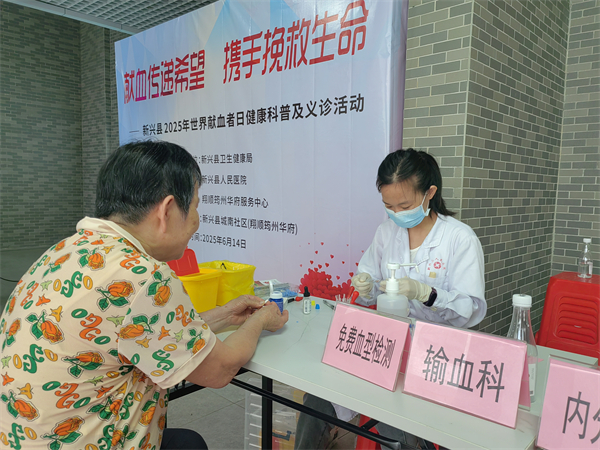为弘扬无私奉献的献血精神,提高群众对无偿献血的认知和参与度,2025年6月14日,新兴县卫生健康局联合县人民医院到县城南社区(翔顺筠州华府)开展“献血传递希望 携手挽救生命”——2025年新兴县世界献血者日健康科普及义诊活动。活动通过科普宣传、现场义诊相结合的形式,将无偿献血宣传与多学科医疗服务深度融合,切实把为群众办实事落到实处。