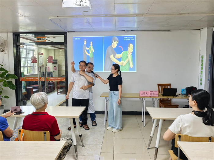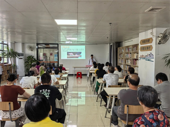 急诊医学科何晃养主任医师则结合日常意外案例,生动讲解了指压止血、加压包扎等外伤止血方法,不同部位伤口的包扎技巧,以及烫烧伤后“冲、脱、泡、盖、送”的现场处置原则。他反复强调,意外发生时“第一时间”的科学自救与互救,对阻断伤害、挽救生命至关重要,极大增强了居民的实际应对能力与救助信心。