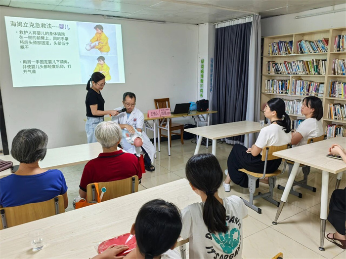 活动现场,新兴县人民医院急诊医学科主管护师郑强用通俗易懂的语言,为居民系统讲解了心肺复苏“黄金四分钟”的重要性和海姆立克急救法的适用场景与原理。他借助成人模拟人,分步演示了心肺复苏的判断意识、胸外按压、开放气道、人工呼吸等操作流程,并针对婴幼儿气道梗阻的特殊性,专门使用小儿模型进行海姆立克法的实操展示,细致讲解背部叩击与胸部冲击的区别及适用情形,确保大家掌握正确的急救技能。