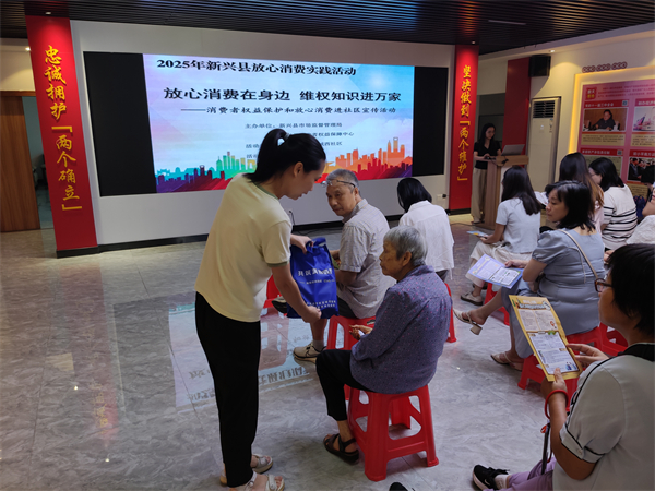 为深化精神文明创建工作,推动新时代文明实践与市场监管主业深度融合,2025年9月11日,新兴县市场监督管理局联合新兴县消费者权益保障中心在县新城镇城西社区组织开展了“放心消费在身边 维权知识进万家”的消费者维权及相关政策进社区宣传活动。