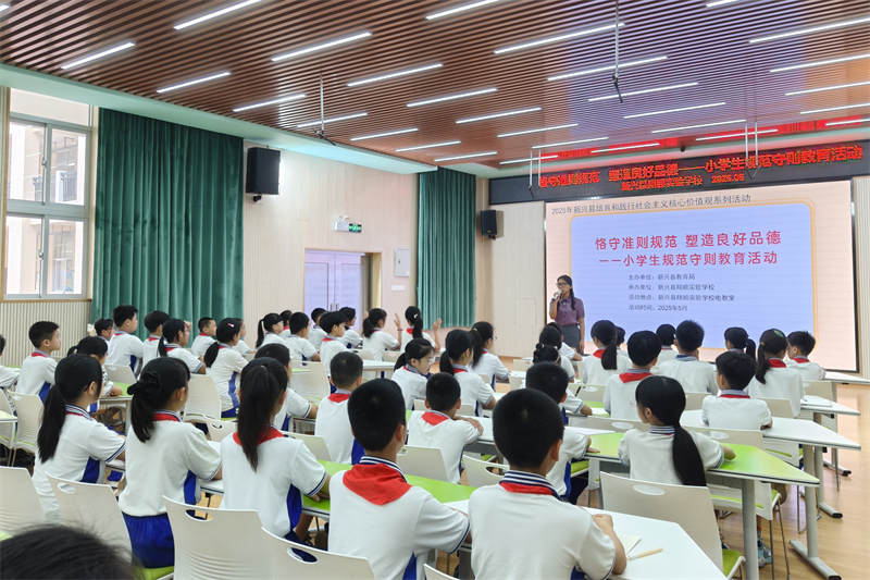 为积极培育和践行社会主义核心价值观,将价值引领融入学生日常行为养成,2025年5月22日,由新兴县教育局主办、新兴县翔顺实验学校承办的“恪守准则规范 塑造良好品德——小学生规范守则教育活动”,在学校电教室顺利开展。