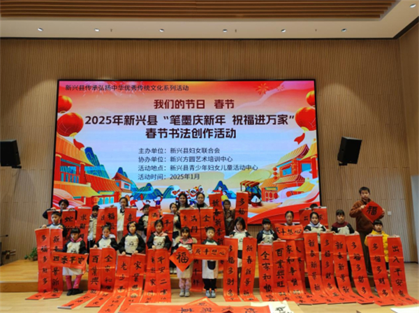 新春将至,为传承弘扬中华优秀传统文化,营造浓厚的节日氛围,2025年1月12日,新兴县妇联举办了一场别开生面的“笔墨庆新年 祝福进万家”春节书法创作活动。此次活动特别邀请了50名儿童参与。