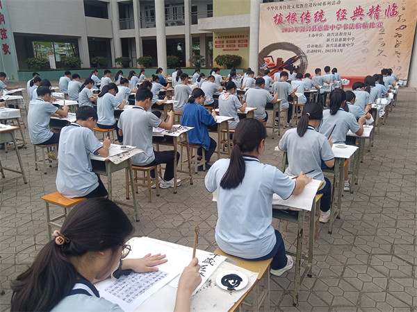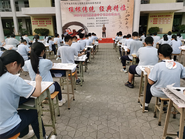 为了进一步贯彻落实习近平总书记关于青少年“扣好人生第一粒扣子”的重要指示精神,深入开展中华优秀传统文化教育,增强中小学生文化底蕴和文化自信,弘扬中华民族的书写艺术,培养学生良好的书写习惯,增强学生写规范字、用规范字的意识。由新兴县教育局和新兴县惠能中学主办的“根植传统 经典精临”书法现场临帖比赛,近日在惠能中学举行。